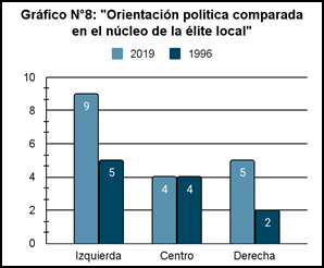 Gráfico 8: Orientación política comparada del núcleo de la élite local.