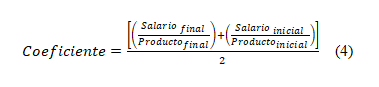 Las estimaciones resultantes son el promedio de las relaciones producto-salario tanto para el período de estudio, como para el año inicial y el año final. La ecuación que determina la tasa de crecimiento de la PTF se muestra a continuación (figura 4).