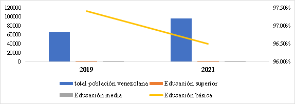 | Año | Total población venezolana | Educación superior | Educación media | Educación básica |