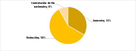 Con base en la figura 2 se visualiza que, en la industria manufacturera y el sector secundario como tal, la representatividad del número de migrantes extranjeros contratados es significativa (58%), debido a que los costos salariales de su vinculación son mínimos, así como, las capacidades productivas son similares a la mano de obra no calificada nativa, presente en los municipios de la provincia Sabana Occidente de Cundinamarca.