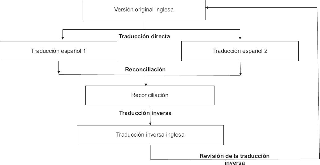 Figura 1 Resumen esquemático del procedimiento de traducción y adaptación cultural de las escalas siguiendo la metodología propuesta en la guía ISPOR2.