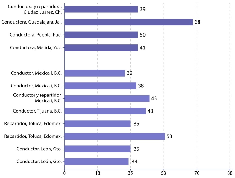 | 3 | Conductor y repartidor | Mexicali, Baja California | 45 | Unión de Administradores de App Mexicali (UDAM) |
