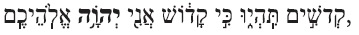 y se escucha: qedošim tihyu, ky qadoš ’any ’adonay (o hašem ) ’eloheykhem;