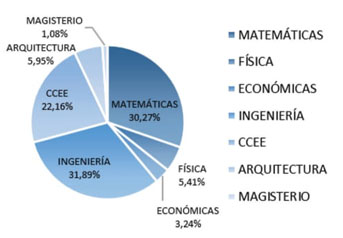 En otro estudio, Muñiz-Rodríguez et al. (2016b) analizan la titulación de 51 estudiantes de la especialidad de matemáticas del Máster de ocho universidades públicas españolas. Obtienen que 43.1% son matemáticas/os, 41.2% ingenieras/ os y 15.7% ha realizado otros estudios como empresa y administración, química, arquitectura o estadística. Muñiz-Rodríguez et al. (2020) también investigan los perfiles del alumnado de la especialidad de matemáticas del Máster partiendo de una muestra de 124 personas de 33 universidades públicas y privadas españolas. La titulación que posee un porcentaje alto del alumnado es matemáticas y estadística (55.64%), mientras que en segundo lugar se encuentra la ingeniería (27.42%) y, en menor medida, otras titulaciones (16.94%).