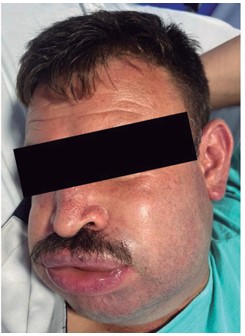 Figura 5 Figura 5. Edema no inflamatorio, sin fóvea ni cambios en la superficie de la piel, con deformación del tercio inferior de la cara (angioedema).