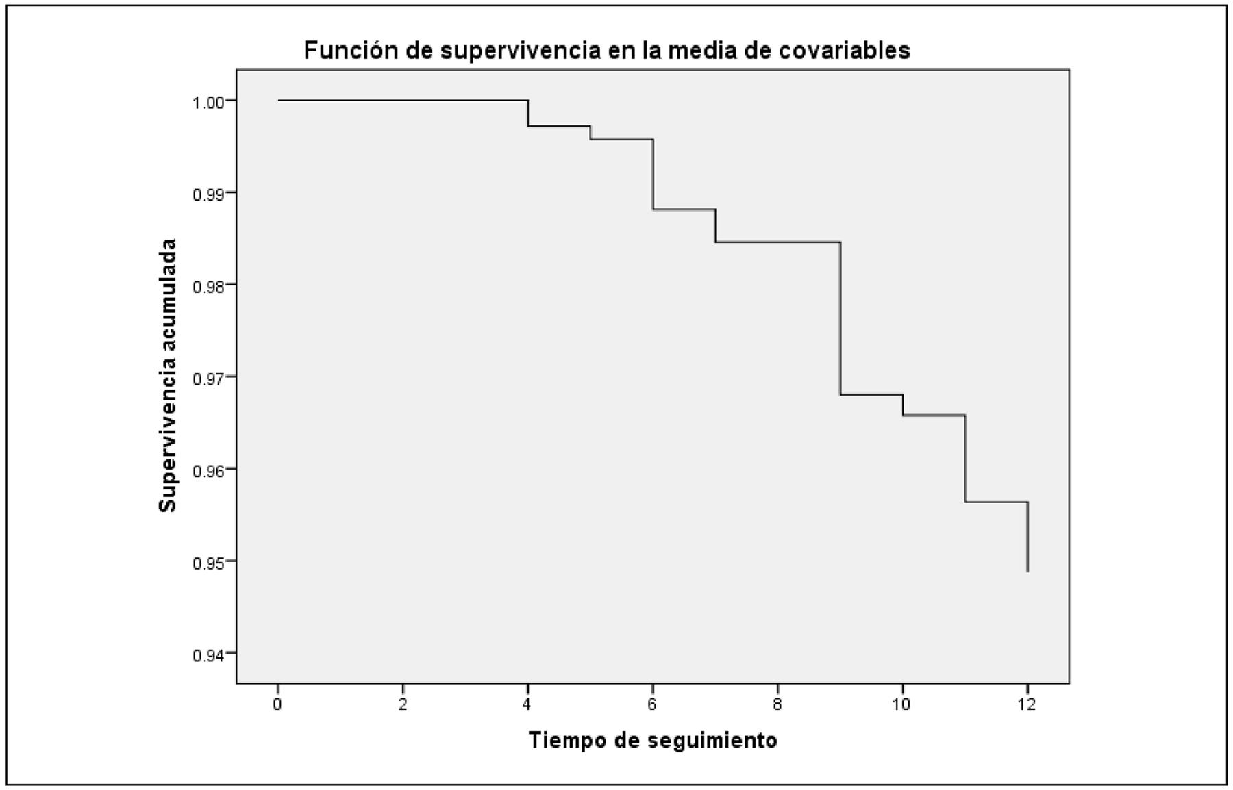 Figura 1. Curva de supervivencia acumulada en relación con la supervivencia en la media de las covariables.