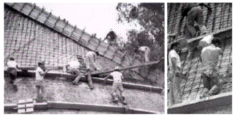 Figura 3 Encofrado y colado de la iglesia de San Antonio de Padua, colonia Xotepingo, Coyoacán. Proyecto: arquitectos Carlos González Lobo y Leonardo Vilchis Plata; diseño estructural: Juan Antonio Tonda. Fuente: Novena Conferencia Ciclo de Seminarios Virtuales. Arquitectura Religiosa, 19 octubre 2020.