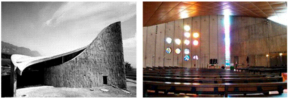 Figura 4a-b Exterior e interior de la Holy Spirit Church (1967-1969), en Lommiswil, Suiza. Fuente: http://mapio.net/pic/p-86581154
