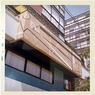 Figura 6 Mural bajo la torre de departamentos, hoy desaparecido. Polaroid de Edna Hidalgo.