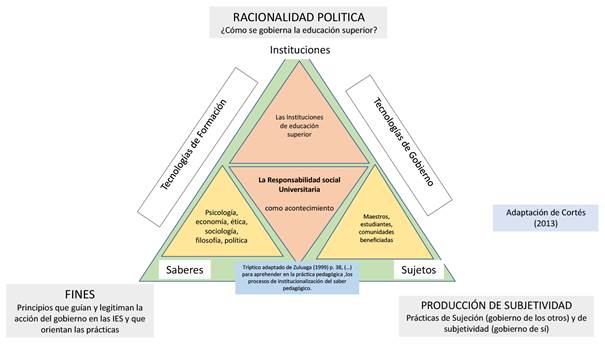 A nivel genealógico, se tomó como elemento clave el poder, el cual permitió analizar la racionalidad política que gobierna las prácticas de RSU, no desde la perspectiva bélica, sino desde la perspectiva de la gubernamentalidad, lo cual representa una sofisticación de un poder que gobierna tanto los procesos de subjetivación de los otros, como los de sí, propiamente dichos.