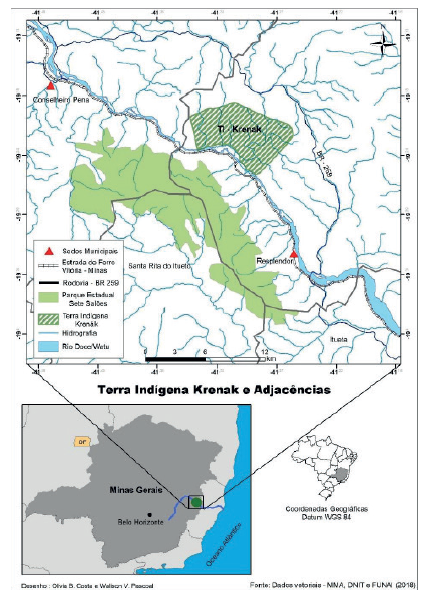 Nesse contexto, os Krenak foram considerados como um empecilho às pretensões do governo de Minas Gerais que, já havia distribuído as terras deles para fazendeiros que se dedicariam à agricultura. O projeto que se tina em mente era o que os indígenas trabalhassem para os fazendeiros. Somente em 1997 a posse das terras foi reconhecida, sendo formalizada a Terra Indígena Krenak (Figura 2), no município de Resplendor, mg.30