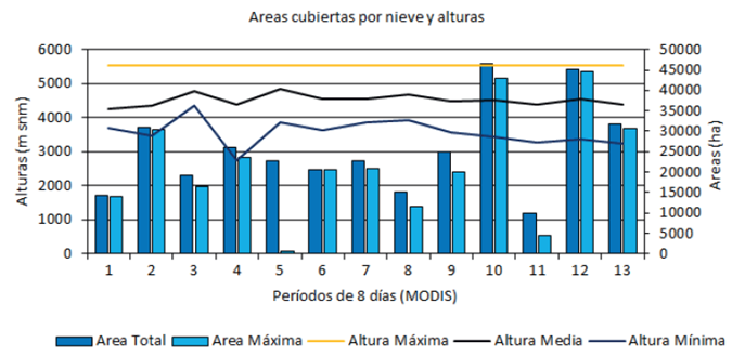 Tabla 4 Fechas, áreas (ha) y alturas (msnm) de las coberturas níveas, obtenidas con el producto de nieve MOD10A2