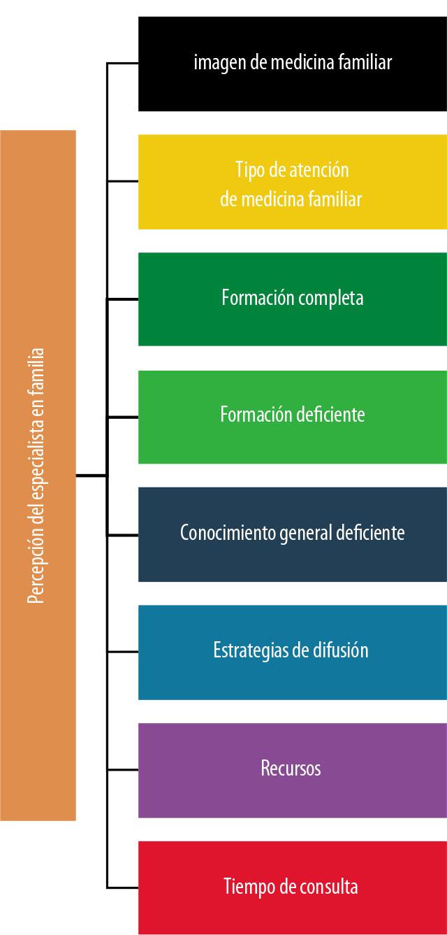 Figura 1 Subcategorías obtenidas de las entrevistas realizadas a los médicos familiares sobre su especialidad.