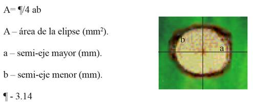 The above statements indicate the need to develop alternative, quick and non-destructive methods for the selection of resistance of banana to FOC in the resistance selection test under field conditions. In this sense, Companioni et al. (2003) developed a procedure for the foliar differentiation of resistance and susceptibility of banana cultivars to FOC race 1, GCV [01210] by means of leaves-boring bioassay (bioassay on banana detached leaves) in and the application of FCH. The evaluation bioassay consisted in collecting middle-aged banana cultivar leaves in the field: Gros Michel (group AAA, susceptible) and FHIA-01 (group AAAB, resistant), on which FCH was applied. The application was made on three different positions of the adaxial side of the leaf limbo: distal, middle and proximal. After 48 hours, the phytotoxic activity of the fungal culture filtrates was evaluated with the symptomatological expression of necrosis formed around the point of application of FCH, expressed as the area of the elliptic lesion (mm2) (Figure 3). Forty-eight hours after the FCH was applied on banana leaves, the greatest statistical differences between cultivars were observed.