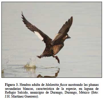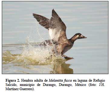 De M. fusca no se tenía registro documentado de su presencia invernal en tierras interiores de México. En esta nota presentamos una observación realizada en el estado de Durango, en el noroeste de la República Mexicana. La geografía diversa del país ofrece estructura y características adecuadas para que muchas especies de aves acuáticas migratorias pasen el invierno, como se ha documentado en otras ocasiones para otras especies consideradas como raras (Martínez Guerrero et al. 2012).