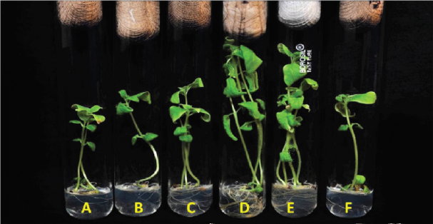 La síntesis verde de NPs de ZnO por medio de extracto de hoja de ciruela de Java (Sysygium cumimi) resulta un proceso amigable y que genera materiales con gran área superficial y buena actividad catalítica (Arumugam et al., 2021). La evaluación en la línea celular de cáncer de pulmón humano A549 provocó un daño nuclear y la modificación del nivel celular ligada a la concentración de las NPs de ZnO. En una concentración de 5 mg/mL, las NPs de ZnO muestran un notable crecimiento en el desarrollo de la raíz y los brotes de la planta de ajonjolí (Sesamum indicum), en comparación con la planta control (Figura 6). El extracto tiene alta proporción de ácido ferúlico, rutina, limonelo, flavonoides y catequinas, los cuales logran la reducción del acetato de zinc en nanopartículas de ZnO casi con morfología esférica. Las nanopartículas de ZnO tienen propiedades plasmónicas y un potencial zeta de -16.9 mV previniendo su aglomeración en solución.