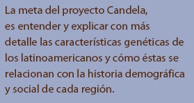 La meta del proyecto Candela, es entender y explicar con más detalle las características genéticas de los latinoamericanos y cómo éstas se relacionan con la historia demográfica y social de cada región.