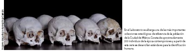 Como parte de la línea de osteología antropológica, en el Laboratorio se lleva a cabo la curaduría de la colección esquelética a partir de los restos de cadáveres utilizados en las prácticas de disección anatómica. En esta línea, se han realizado importantes contribuciones para los estándares de identificación humana a partir de restos óseos.