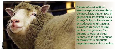 Durante años, científicos intentaron producir mamíferos clonados, hubo por fraudes y algunos indicios que sugerían limitaciones biológicas para la clonación de las especies de esta rama de los vertebrados, hasta que, en 1997, el grupo del Dr. Ian Wilmut crea a la oveja Dolly por transferencia de núcleos de células adultas a ovocitos sin núcleo celular, por tanto sin genoma. Poco tiempo después se lograron clonar ratones, con lo que se confirmó en mamíferos lo propuesto originalmente por el Dr. Gurdon. En este punto renace el debate sobre la posible clonación de seres humanos y pone en tela de juicio los pros y contras de la tecnología desarrollada, dejando de lado la trascendencia científica de los logros alcanzados.