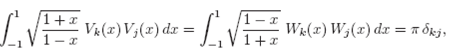 Chebyshev polynomials Vk (x) and Wk (x) are orthogonal on (-1,1) in the sense that