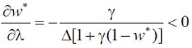 Otro resultado importante es la respuesta de los saldos monetarios reales de equilibrio, w*, a cambios permanentes en el parámetro de intensidad, λ. Un aumento permanente en el número esperado de devaluaciones por unidad de tiempo, ocasiona un incremento en el costo de oportunidad futuro de la compra de bienes. Esto, a su vez, disminuye permanentemente la proporción de la riqueza dedicada al consumo futuro. De hecho, después de calcular la derivada de la ecuación [18] con respecto a λ, se obtiene