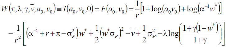 Ahora se determinan los efectos de choques exógenos en el bienestar económico. Como siempre, el criterio de bienestar, W, del individuo representativo es la utilidad maximizada con riqueza real inicial, a 0, y tasa impositiva inicial sobre la riqueza, τ0. En virtud de la ecuación [14], el bienestar está definido por: