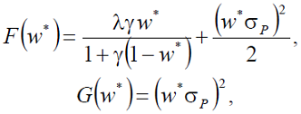 La utilidad logarítmica conduce a que w dependa solamente de los parámetros que determinan las características estocásticas de la economía, y por tanto w es constante. Es decir, la actitud del consumidor hacia el riesgo cambiario es independiente de su riqueza, i.e., el nivel de riqueza resultante en cualquier instante no tiene relevancia para las decisiones de portafolio. Más aún, debido a la utilidad logarítmica, el coeficiente de correlación, ρ∈(–1, 1), no juega papel alguno en las decisiones del consumidor. Por último, es importante señalar que la ecuación [18] es cúbica, por lo que tiene al menos una raíz real.