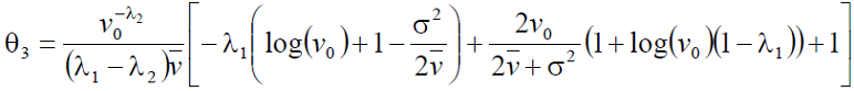 Los coeficientes θ2 y θ3 son obtenidos de tal manera que φ(𝑣0)=0 y φ’(𝑣0)=0 (véase el Apéndice B). La primera condición inicial asegura que el bienestar económico,