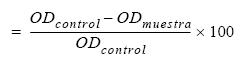 La actividad citotóxica y antiproliferativa fue determinada como el porcentaje de inhibición de la proliferación celular:
