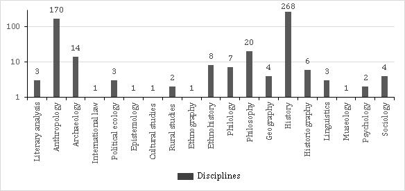 To obtain an idea of the journal's profile, suffice a bit of historical perspective. From early 1997 to late 2015, a total of 76 normal issues were published, plus one extra tome, which contain 519 refereed articles. We made a preliminary count of the disciplinary fields that the journal covered in that period, but it is important to note that in many cases the contents, topics and focuses of certain articles do not easily lend themselves to such a 'bird's-eye' classification, for they crisscross disciplines and topic areas: from studies of cultural history with methodologies adopted from anthropology, to works in fields like geohistory and economic history. Moreover, some essays that might be catalogued as rural studies were found to have a more direct relation to anthropological perspectives or historical methodologies, and so were assigned to those niches. Hence, the information that follows is but a preliminary approach based on broadly-defined, unnuanced disciplines.