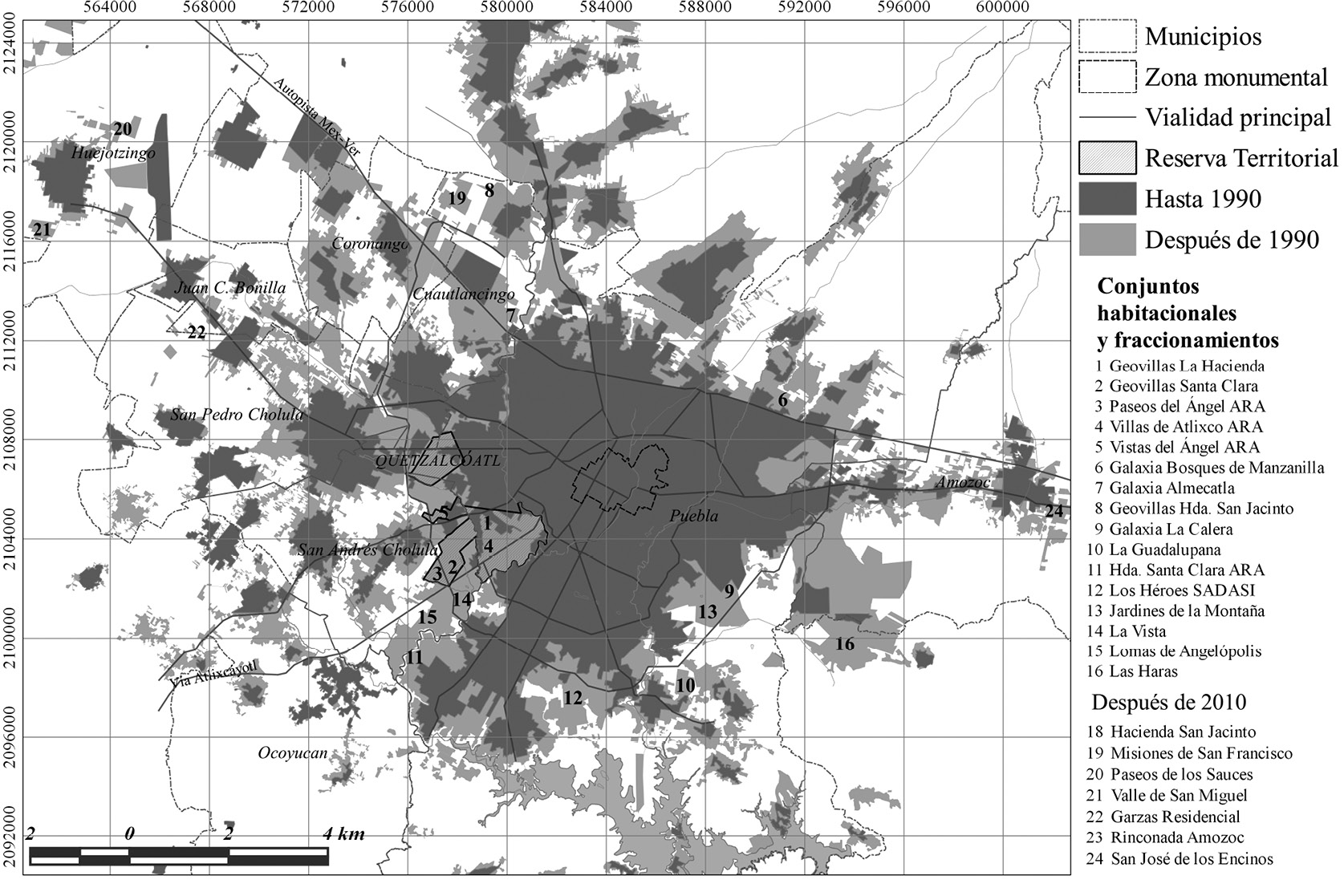 En el contexto latinoamericano se han propuesto modelos de estructura urbana propios (Borsdorf, Hidalgo y Sánchez, 2007; Gormsen, 1981), pero los esfuerzos por espacializar esos procesos socioeconómicos y políticos son menos frecuentes. En el caso de Puebla, Flores (1993) realizó un seguimiento de los cambios en la estructura territorial del área metropolitana y Germain y Pòlese (1996) realizaron un interesante análisis factorial de la segregación residencial.