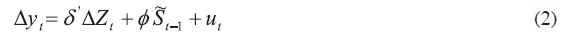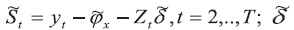 son los coeficientes de la regresión de Δyt sobre ΔZt; y φx es dada por