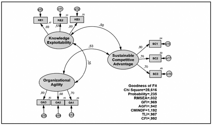 | KE3 | <--- | Knowledge Exploitability | 1.152 | .163 | 7.074 | *** |