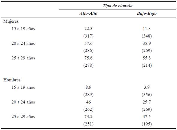 De estos eventos, la entrada en unión es clave en el proceso de transición a la vida adulta, sobre todo en sociedades donde la institución familiar ocupa un lugar preponderante. En México, esta transición familiar se asocia con la salida del hogar paterno y con el inicio de la vida reproductiva. Es común que los jóvenes mexicanos al unirse dejen el hogar de sus padres (Echarri y Pérez, 2007; Pérez, 2006; Echarri, 2005), y es más común todavía que los primeros nacimientos ocurran dentro de los primeros años de iniciada la unión (Martínez, 2011; Rojas, 2008; Sebille, 2005). Además, al unirse, las personas no sólo dejan un hogar para formar un nuevo núcleo familiar, también asumen un nuevo papel social, sobre todo si este evento se acompaña con el inicio de la maternidad/paternidad. Más aún, al entrar en unión los individuos interconectan sus respectivos procesos de asunción de roles adultos. Bajo el principio de vidas interconectadas en la perspectiva de curso de vida (Elder, 1992; Elder et al., 2003), la interacción de los cónyuges influirá sobre las acciones, decisiones y elecciones individuales de las cohortes subsiguientes. Con todo lo anterior, es posible pensar que el inicio de la vida conyugal es un evento insignia del proceso de transición a la vida adulta.