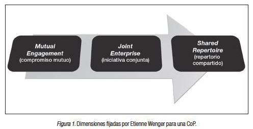 En este sentido, la conformación de CoP–Innova se ha sustentado en las tres premisas o dimensiones fijadas por Wenger E. (1998) (Figura 1):