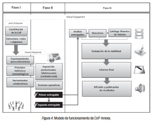 El funcionamiento de la CoP se basa en el modelo descrito en la Figura 4 y en las fases y metodología de trabajo siguientes: