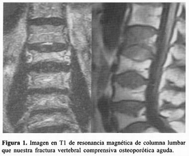 Los regímenes farmacológicos actuales preventivos para la osteoporosis (terapia de reemplazo hormonal, vitamina D, bifosfonatos y calcitonina) con frecuencia se prescriben hasta que la enfermedad ha sido diagnosticada por la presencia de una fractura 3,15 . Las fracturas vertebrales por compresión por lo general permanecen en el espectro subclínico y progresan gradualmente; sin embargo, algunos pacientes desarrollan un síndrome doloroso agudo severo con movilidad limitada y deterioro funcional 12,13.