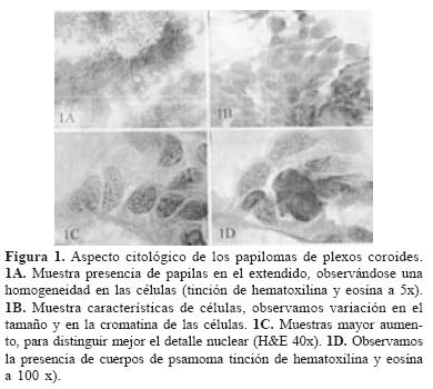 El estudio citológico de los tumores de plexos coroides es poco conocido dado a la rareza misma del tumor y debido a que solo casos aislados o pequeñas series, se han reportado2,3.