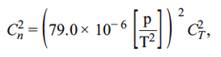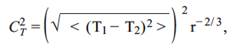Sophisticated measuring equipment has been used to measure air temperature and pressure within the turbulent region. The propagation path length is represented by L and is equal to 2.52 m; the wavenumber k is the wavelength of a helium-neon laser at 532 nm; r describes the region between two reference points within the propagation path length, and T1 and T2 represent the temperatures at the two reference points. Measuring these observations in the laboratory allows one to determine, after Andrews and Phillips (1998),