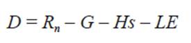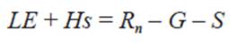 Assuming that the energy converted into chemical energy by green plants and the horizontal flow of energy, caused by advection between the soil surface and the level of the eddy covariance instrumentation, were negligible; then the energy balance equation of a terrestrial surface is simplified as
