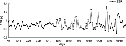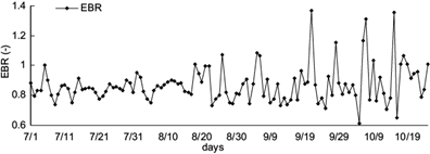 Fig. 3 Variations of the energy balance radio without considering changes in soil heat storage during the rice cultivation season.