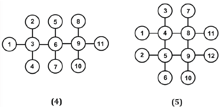 Figura 3 Grafos de las moléculas (4) y (5). Los átomos son los vértices y los enlaces, los lados, la numeración es arbitraria.