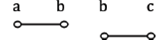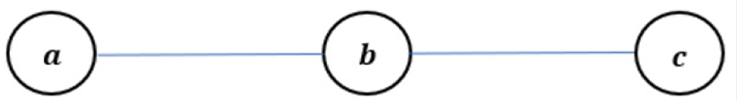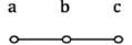 Figura 4 Grafo G = (V(G) = {a, b, c}, E(G) = {ab, bc}). Esta representación describe una cadena hidrocarbonada con una insaturación, se definen los átomos de carbono como a, b, c y se suprimen los átomos de hidrógeno para mayor claridad. Las líneas representan la conectividad entre estos átomos, el modelo no requiere hacer referencia explícita a enlaces σ o π.