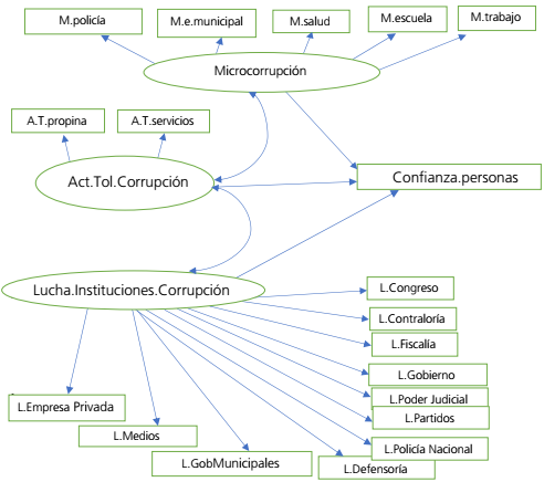 Hay un efecto directo de la variable “Microcorrupción” en la confianza interpersonal, tal vez el más discutible, pero hay que entenderlo desde las prácticas del individuo que “le ayudan” a resolver un “problema o situación”, lo que le permite establecer relaciones de cierto modo de confianza. Esto abre la disyuntiva de que la corrupción tiene que ser estudiada desde diferentes configuraciones porque expresa recurrencia en los individuos, la forma de cómo hace uso y se relaciona con una institución. Pero por otro lado configura cierta confianza y es un aliciente para entablar este tipo de relaciones entre personas.
