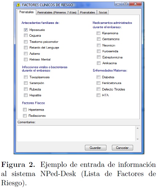 En este trabajo, se presenta un nuevo sistema conformado como un programa de cómputo o aplicación NPedDesk, creado con el fin de completar, organizar, y controlar la información generada en este tipo de programa de tamiz (basado en el uso del instrumento NPed), desde la unidad central o centro de referencia. En esta, se produce la integración de los resultados obtenidos por los diferentes aplicadores de la red con el objetivo de garantizar el control de las diferentes variables relacionadas con el funcionamiento del programa. El desarrollo de la aplicación contará con las ventajas que se derivan de la inclusión de un conjunto de especificaciones, enriquecidas y actualizadas, gracias al aporte de especialistas con experiencia clínica en la temática (participantes en un proyecto de investigación desarrollado en la Jurisdicción Sanitaria Azcapotzalco, coordinado con la Secretaria de Salud del Distrito Federal y con la colaboración de los autores del sistema NPed, pertenecientes al Centro de Neurociencias de Cuba).