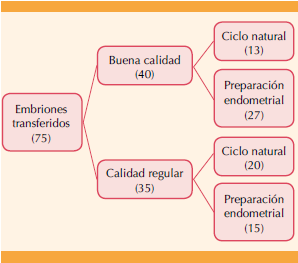Por lo anterior, se decidió revisar la tasa de embarazo en las pacientes a quienes se efectuó transferencia de embriones vitrificados en día 5 (D5) con los casos realizados en ciclo natural versus las pacientes con preparación endometrial. Para el análisis también se incluyeron las características de la calidad embrionaria. El objetivo de este ensayo es comparar la tasa de embarazo en ciclos de transferencia de embriones vitrificados versus ciclos naturales y con preparación endometrial.