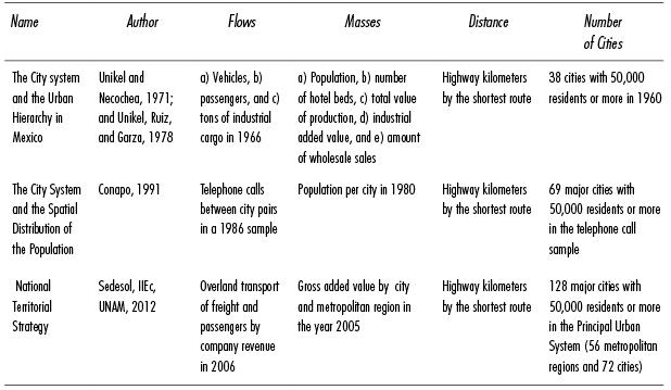 In this context, this paper will address three studies that draw on classic spatial interaction models, and which also share some aspects of the methodology in order to compare the results over time. The data express changes between periods of approximately 20 years, pursuant to the economic policies Mexico has adopted, looking at hierarchies and the major links between the largest cities, their zones of influence, and their economic and demographic significance.
