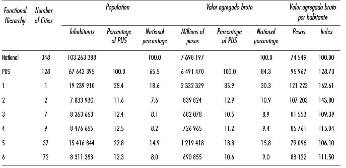 Table 3 Mexico, Population, EAP, and Gross Added Value by Functional Hierachy of Cities, 2005.