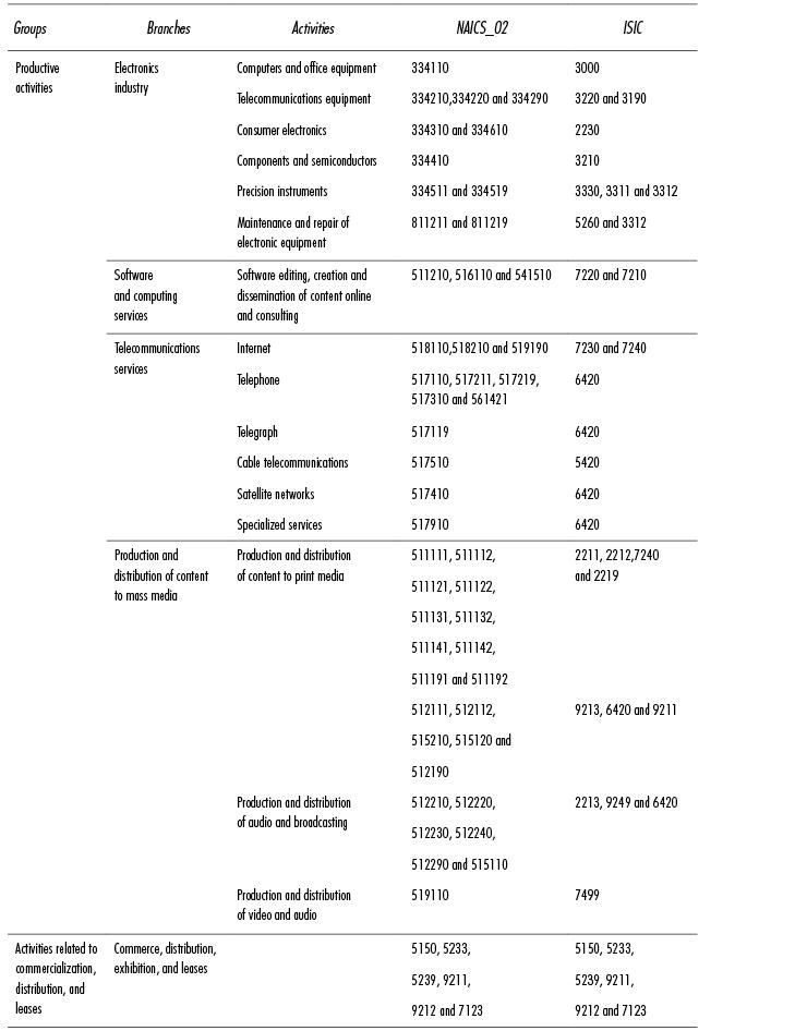 At the macroeconomic level, the information and communication technology revolution has brought with it a new technology-production complex, composed of a set of industrial activities and services linked by the basic technologies of the integrated circuit, software, and digitalization, of which the TCSI is a part, which in this paper shall be called the electronics-information technology and telecommunication sector (EI-TS) (see Table 1).