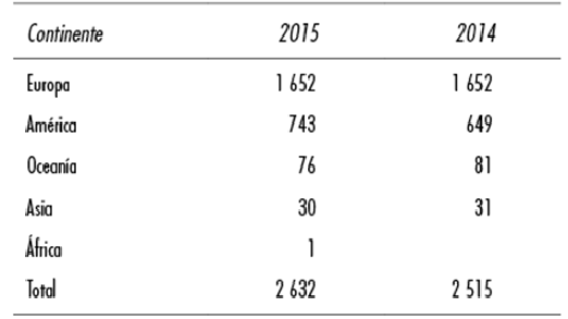 Source: Conacyt, digital archives: New Grants for Study Abroad by Destination Country 2015 and 2014, at <https://datos.gob.mx/busca/dataset/becas-al-extranjero>